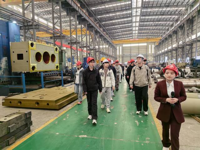 3月26日,同学们前往达一重锻科技有限公司参观学习。该企业为国家级专精特新“小巨人”企业,由副院长杨道龙、党委副书记刘洁及两位专业老师带队。同学们分两批次依次跟随讲解人员进入生产车间,参观了企业重型数字化“黑武士”系列产品生产线,深入了解产品的生产工艺与流程。院领导还与企业负责人进行了工作洽谈。