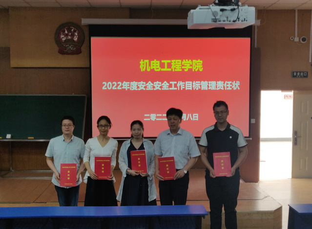 同时,学院精心设计制作了“2022安全生产目标责任状”,根据人员不同工作环境和工作特点,将安全责任人分为“教授及行政人员”、“系党支部书记”、“系主任”、“辅导员及班主任”和“实验人员”五类,并举办了安全责任状签订仪式。