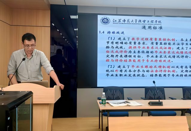 随后,副院长杨道龙就认证工作的核心内容进行了系统详实的讲解。他深入解读了工程教育认证标准,围绕“学生中心、产出导向、持续改进”三大核心理念,详细阐述了培养目标、毕业要求、课程体系、师资队伍和支持条件等关键指标的内涵与要求。他强调,每位教师都要深刻理解认证标准,并将其内化于日常教学与管理工作中,共同为工程教育专业认证的顺利通过贡献力量。