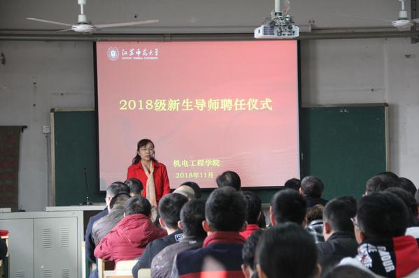 为进一步提高人才培养质量,推进本科生培养模式改革,11月14日下午,机电工程学院于12#603C举行2018级新生导师聘任仪式。机电工程学院全体领导班子,新生导师以及大一新生参加了聘任仪式。聘任仪式由机电工程学院党委副书记梁宝文主持。