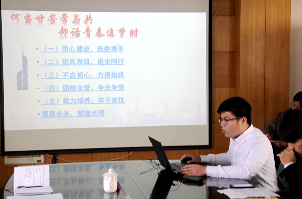 展评会上,各班围绕“班风正、学风好、学子优、班委强、荣誉多”等方面,以PPT和视频的形式汇报了班级建设、班级特色和荣誉。有的班级以视频展示出活跃的创造力和班级凝聚力,有的班级充分体现了工业设计的专业特色,展示出不一样的风采,各个参评班级根据班级特色展示了建班以来的成长和收获。随后14级班长结合班级情况为大家分享了班级管理经验和反思,为大一班级建设提供建议和参考。