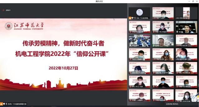 劳动精神是中国共产党人精神谱系的重要内容,是以爱国主义为核心的民族精神和以改革创新为核心的时代精神的生动体现。10月27日下午,机电工程学院在17#300A举办“传承劳模精神,做新时代奋斗者”信仰公开课活动。机电工程学院优秀校友、“全国劳动模范”张达鑫应邀出席活动,学院青年团员代表以线上线下相结合的形式参加本次活动。活动由院党委副书记陈晓林主持。