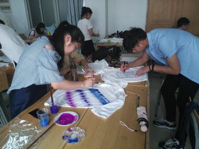 手绘现场,各位“画家”各显身手,运用不同的绘画技法,在洁白的T恤上描绘心中美丽的画卷,用别具特色的艺术作品表达乐观向上的情感与情怀。其中,有清新可爱的动画人物,有唯美配色的晕染色彩,有富有国风韵味的水墨画,还有创新有内本次比赛丰富了同学们的课余生活,提高同学们对专业知识的运用,激发起大家的创作热情,充分展现了当代大学生敢于创新、勇于创新的时代精神。