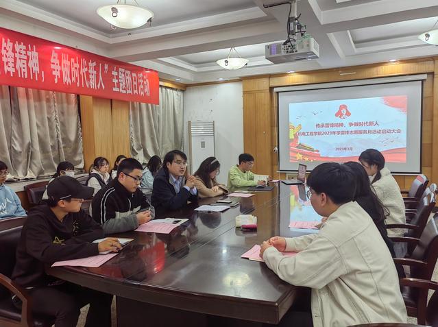 2023年3月5日是第60个“学雷锋日”和第24个“中国青年志愿者服务日”。为了深入学习习近平总书记关于弘扬雷锋精神的重要论述,组织和引领团员青年积极参与志愿服务活动,3月8日,机电工程学院在12#606A会议室举行2023年学雷锋志愿服务活动月启动大会。机电工程学院团委书记丁永剑、各班级团支书与至诚服务队志愿者代表参加活动。