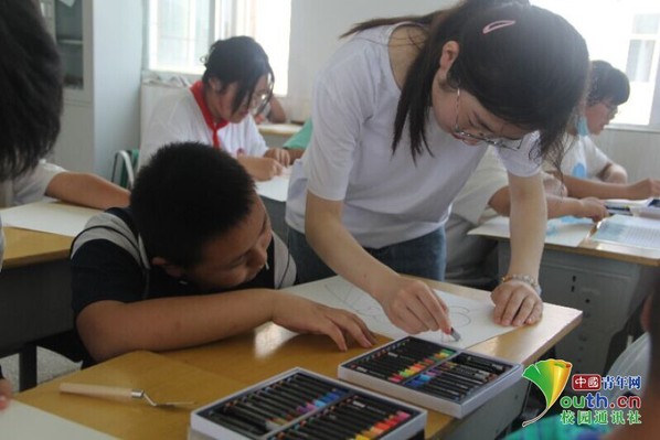 在美术课堂开始之前,实践团成员们面对第一次教学显得既紧张又兴奋。但是当真正来到教室的时候,孩子们那一双双明亮清澈的眼睛,一片片纯真灿烂的笑容完全化解了“小老师们”的拘谨与胆怯。实践团成员打开投影仪并播放提前准备好的图片,通过讲解构图和色彩要领让同学们学习画画技巧。同时也提前给同学们准备好了画纸以及油画棒,讲解结束后,同学们自由发挥,用小小画笔描绘出自己心中的夏天。在指导小朋友们绘画的过程中,实践团成员发现很多孩子们都很有绘画天赋,画出来的作品都很精美,于是在原有教学安排上又增加了作品展示和交流的活动,“小老师们”毫不吝啬的赞美大大增加了小朋友们的自信心。