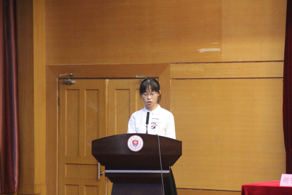 随后,教师代表王崧全老师发言。王老师从自己经历出发和同学们分享大学生活应该是什么样子,他提醒同学们要注意大学里容易使人堕落的“小陷阱”,希望同学们从进入大学的这一刻开始,学会做人,学会生活,学会学习,学会合作。接下来2015级薄晓楠、2017级郭洁同学分别作为老生、新生代表发言。薄晓楠同学以自身大学生活心得和经验分享了如何度过充实的大学生活,郭洁同学就自己刚来大学的体验和对未来四年的畅想谈了自己的感悟。
