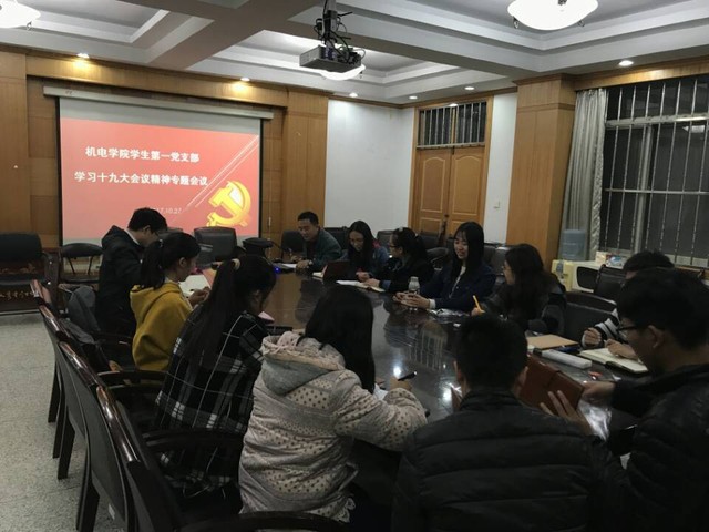 为了深刻领会十九大精神,用新理论新思想武装学生党员的头脑,20171027日机电工程学院学生第一党支部在田家炳工学院会议室开展了学习十九大精神专题活动。党支部书记侯秀杰老师和学生第一党支部全体学生党员参加了本次活动。