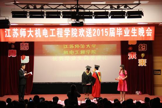 6月16日晚,江苏师范大学敬文报告厅歌舞飞扬,温馨流淌。机电工程学院“铸梦青春,相约未来”欢送2015届毕业生晚会温暖上演。机电工程学院全体领导班子,各系主任、书记,教授和教师代表,辅导员老师参加了晚会。
