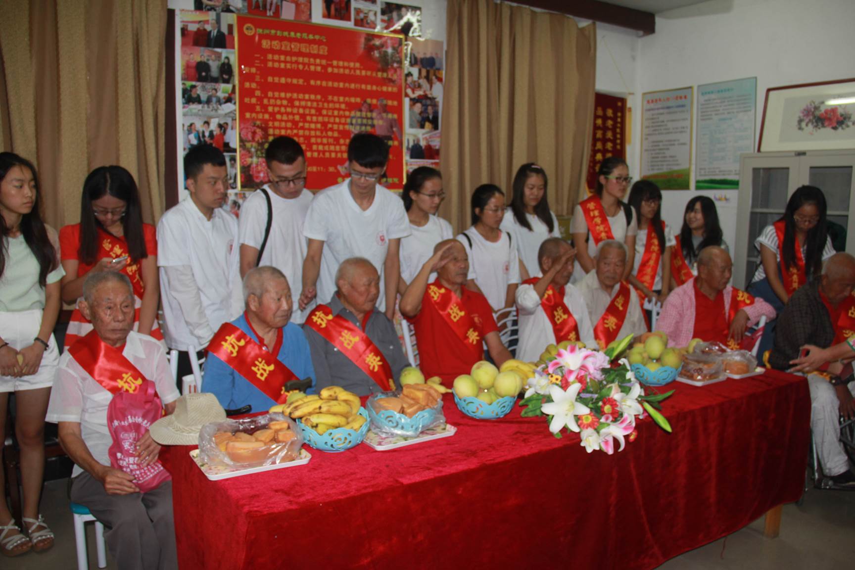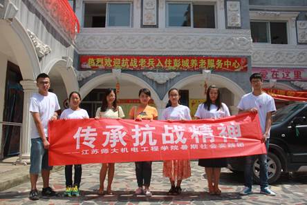 为纪念中国人民抗日战争胜利曁世界反法西斯战争胜利七十周年,追寻红色足迹,传承抗战精神,继上次探访徐州运河支队抗日纪念馆活动之后,8月29日上午,江苏师范大学机电工程学院“红色之旅”大学生暑期“三下乡”社会实践队来到了“红色之旅”第二站——徐州市云龙区燎原养老院,探望在此居住的抗战老兵。