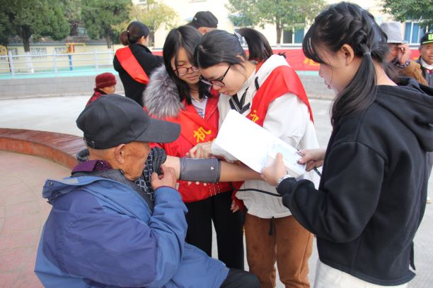 2018年11月24号星期六,机电工程学院至诚服务队第三次三堡敬老院活动圆满结束。本次活动的主题为:关爱孤寡老人,争做时代新人,传承红色精神。此次活动共招募志愿者11名,旨在初冬来临之际,给空巢的老人们带去温暖与陪伴,为他们测量血压和表演节目,让他们可以感觉到来自儿女般的关心与照顾。11月24号(周六)下午一点十一位志愿者们统一在学校东门集合,乘坐公交车前往敬老院。下车后,步行了十多分钟,便看见了敬老院的大门,老人看见志愿者的到来,纷纷互相转告,紧接着都从房间里走出来,热情的和志愿者们打招呼。首先,志愿者们为老人分发美味可口的小蛋糕。然后志愿者们让需要量血压的老人排好队坐在院子里,并拿出了电子血压计细心地为老人测量了血压,仔细的询问他们的名字和年龄,做好老人们的血压记录。志愿者们也耐心地告诉他们血压是否正常,叮嘱他们要平时饮食的注意事项。老人们都露出满意的笑容并说着谢谢。没给老人量血压的志愿者也没有闲下来,他们正和老人肩并肩坐着,静静聆听老人年轻时的故事或着与老人分享自己学习生活上的小故事。在聊天的时候,负责人阿姨给志愿者们送来了甘甜的橘子,大家边聊天边吃着橘子,心里都感到暖洋洋的。最后就是到了表演节目的时候了,志愿者们一共为老人准备了5个节目,两个优美的舞蹈、两首动听的歌曲和大合唱红歌《爱我中华》。在大家跳舞的时候,有一位聋哑老爷爷也跟着我们手舞足蹈的跳了起来,非常享受跳舞的过程。在每个表演结束后,老人们都高兴的合不拢嘴,纷纷为我们精彩的节目鼓掌。全体志愿者们在表演的最后合唱了一首《爱我中华》,也赢得了老人们和敬老院负责人的赞扬。要离开时,老人依依不舍,纷纷向志愿者们挥手告别,感谢志愿者们给他们带去的快乐,拉着我们的手叮嘱大家下次一定还要来啊!