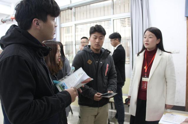 招聘会现场,参展单位通过设立宣传展架、派发宣传资料、面对面洽谈等多种形式向同学们详细介绍单位的基本情况、招聘要求以及福利待遇,并耐心细致地进行现场答疑解惑。参加招聘的同学积极与招聘单位进行沟通交流,主动了解用人单位的情况。