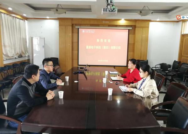 10月22日,富誉电子科技(淮安)有限公司人力资源张总监、人力资源主管韩硕到机电工程学院就促进就业、合作共建学生实践基地等内容进行沟通交流。机电学院党委副书记梁宝文、机电学院团委书记刘萌、机电学院就业辅导员丁永剑参加了座谈交流会。