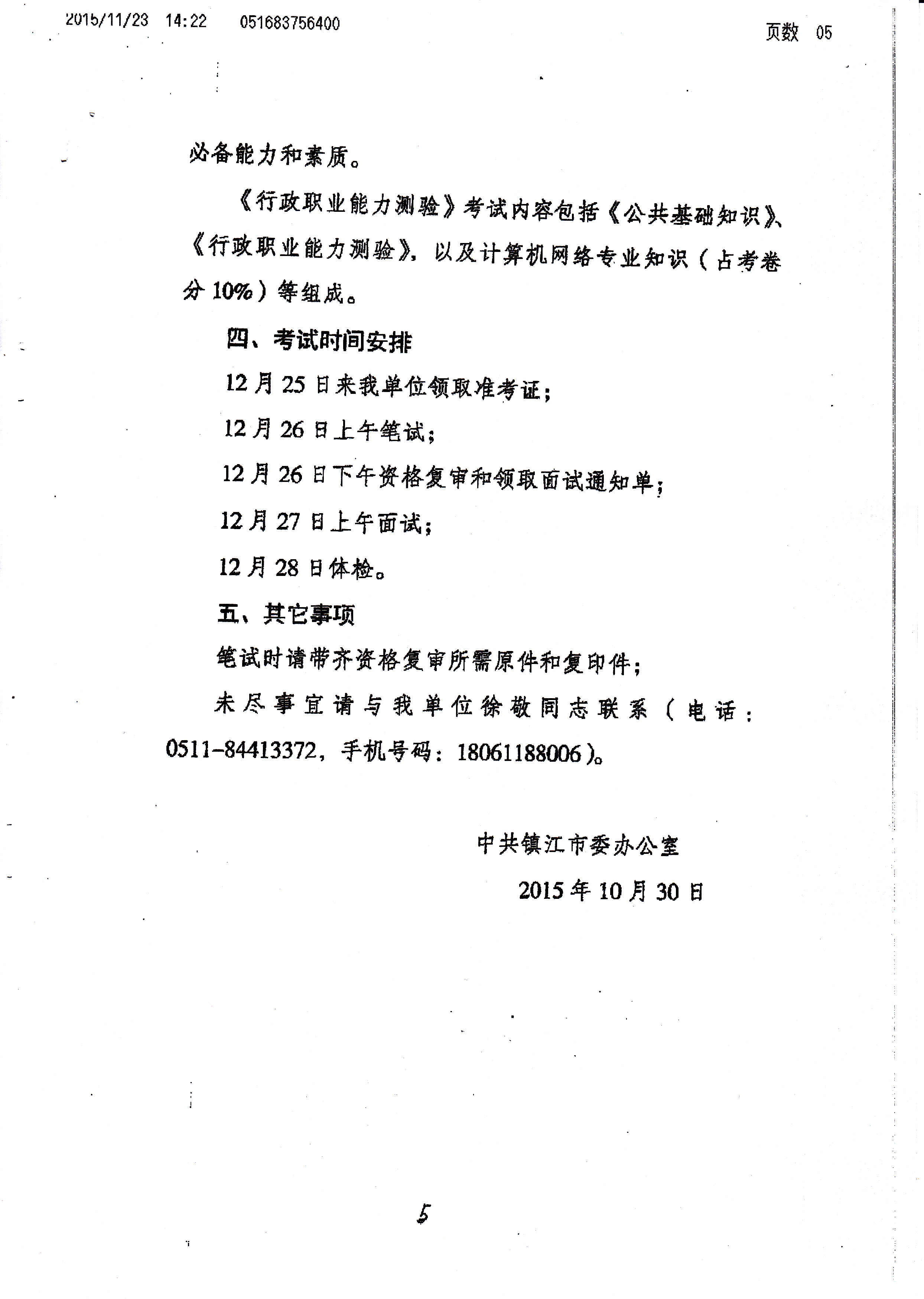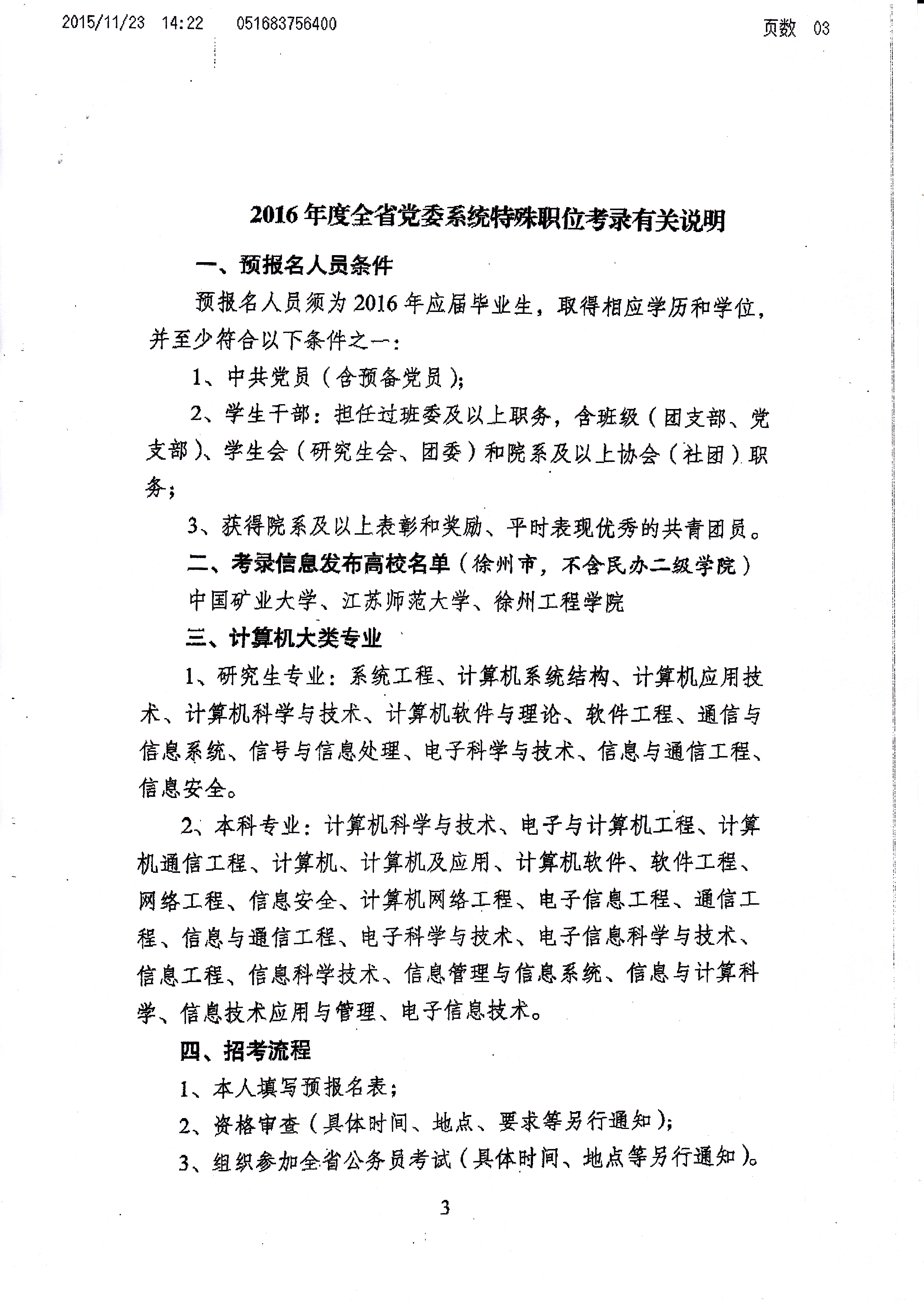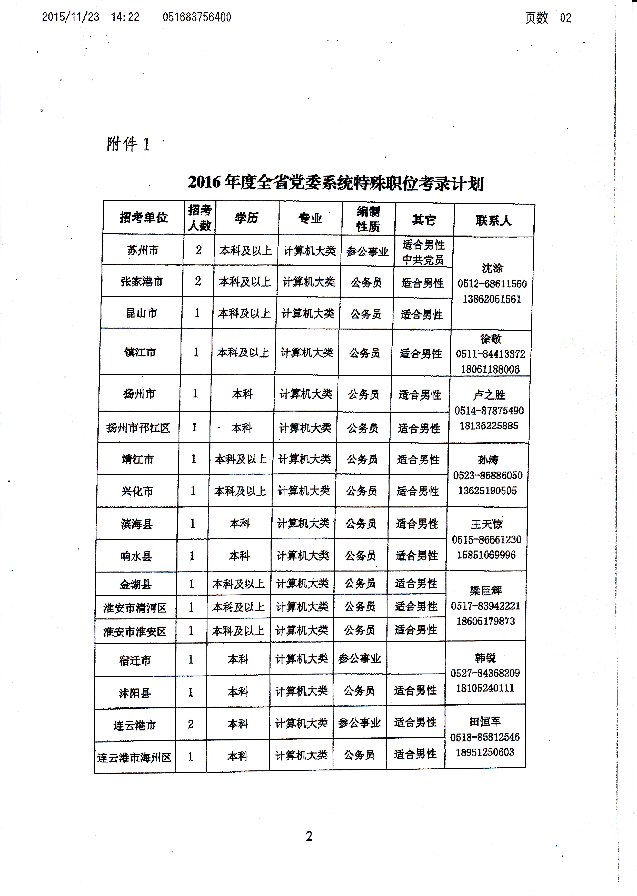 2016年度全省党委系统特殊职位考录计划、中共镇江市委办公室招聘考试说明以附件方式发布,敬请关注我校就业信息网招信息发布。